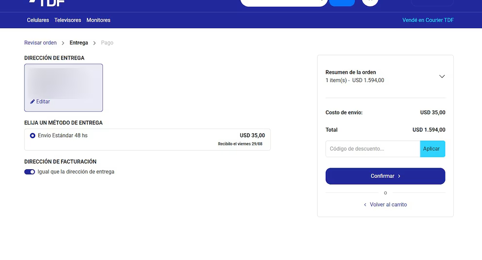 Este canal cubre todo el territorio nacional, salvo la provincia fueguina, que por cuestiones regulatorias queda excluida. El costo del envío se define en función del destino y la naturaleza del artículo, y siempre aparece desglosado antes de confirmar el pago.