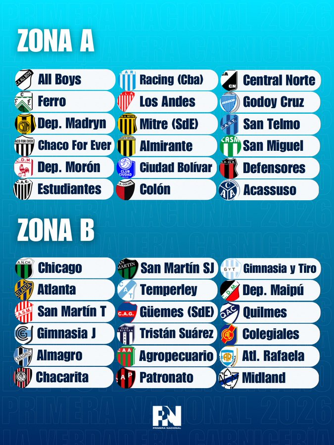 Asi quedaron definidas las zonas para la Primera Nacional 2026: cual es la más dificil?