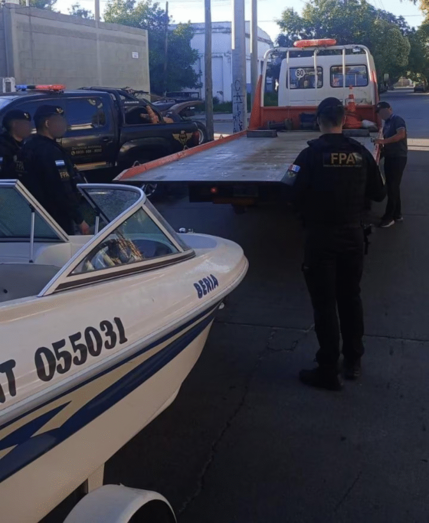 La lancha secuestrada en los allanamientos. (Foto: FPA)