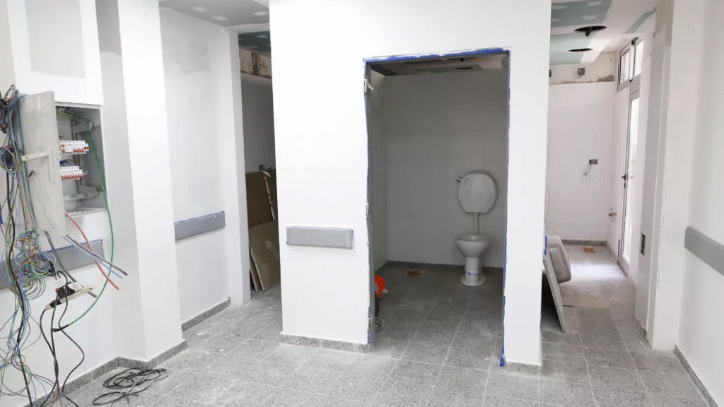 Paralelamente, sobre una superficie de 195 metros cuadrados, se ejecuta la refacción de un sector de habitaciones y el office de enfermería, donde se desarrollarán quirófanos ambulatorios con una ampliación específica para la recuperación postquirúrgica y locales de apoyo.