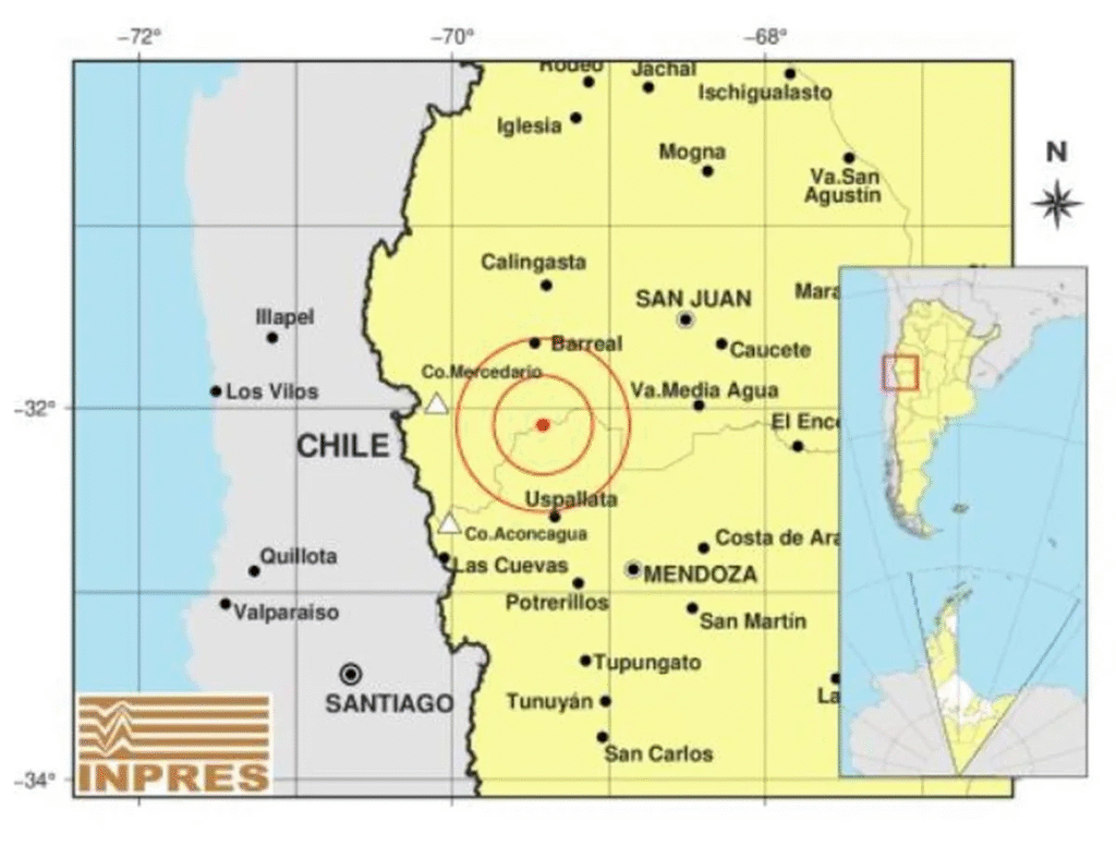 El Inpres informó que el epicentro estuvo a 104 kilómetros al noroeste de la Ciudad de Mendoza
