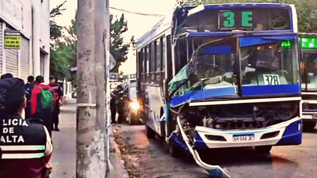 Chofer del colectivo dio positivo en alcoholemia tras el choque a un poste de cemento en calle Pellegrini y Zabala.-