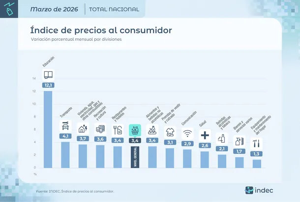 Durante enero y febrero de 2026, la inflación se había estabilizado en el 2,9%. El salto al 3,4% implica un quiebre en la tendencia de desaceleración o estabilidad que el Ministerio de Economía intentaba consolidar. Para el Gobierno, esto significa admitir que factores estacionales y regulados (como Educación y tarifas) tienen una inercia difícil de frenar solo con política monetaria.