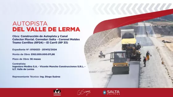 Con la presencia del gobernador Gustavo Sáenz, este jueves a las 10, dará inicio la construcción de la autopista del Valle de Lerma y el canal colector pluvial del corredor Salta y Coronel Moldes, tramo Cerrillos RP 24 – El Carril RP 33.