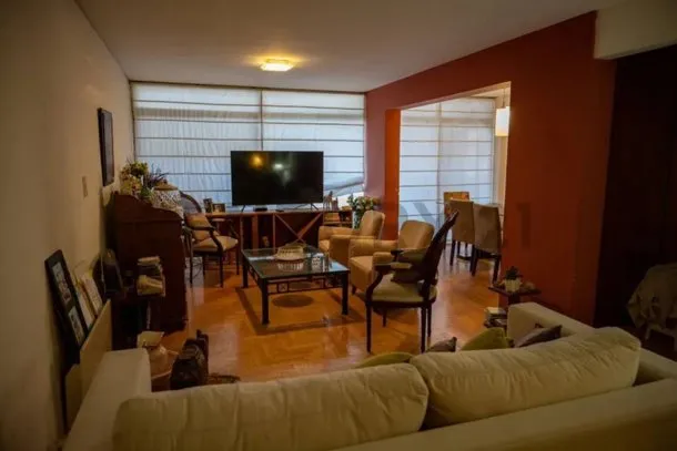 El departamento en venta cuenta con tres ambientes distribuidos en 98 metros cuadrados y se encuentra en el cuarto piso de un edificio con disposición al frente. La propiedad, de unos 50 años de antigüedad, es ofrecida como en buen estado de conservación, sin daños estructurales ni problemas de humedad.