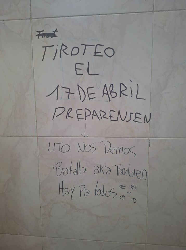 Mensaje que se dejo en el baño de varones en colegio secundario Miguel Araoz de Salta Capital