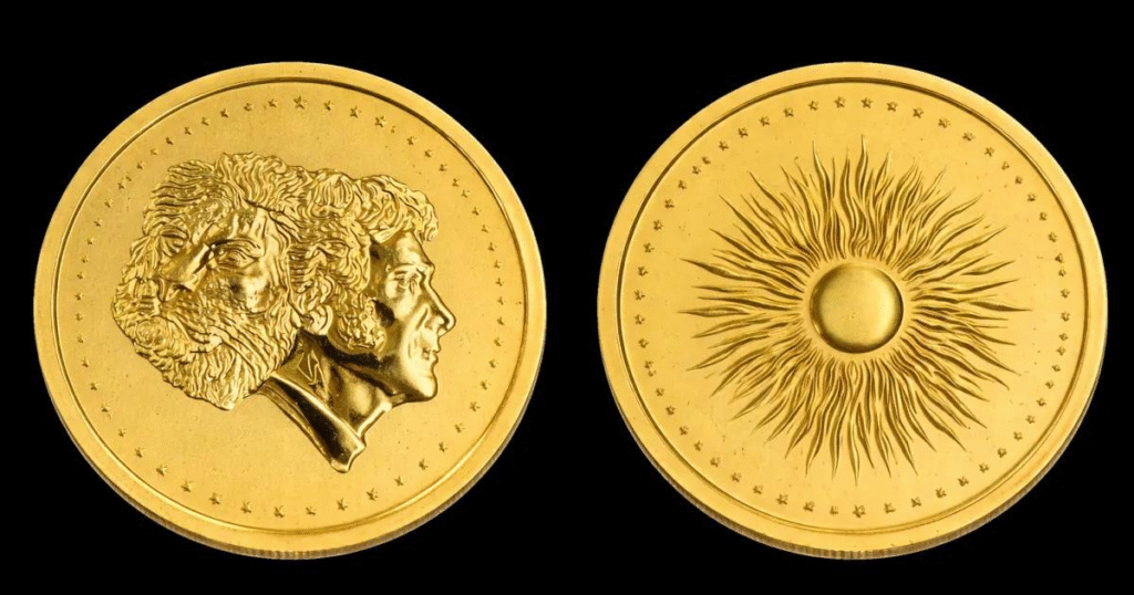 El mismo incluía acuñar piezas con el rostro del mandatario y símbolos asociados a su figura política