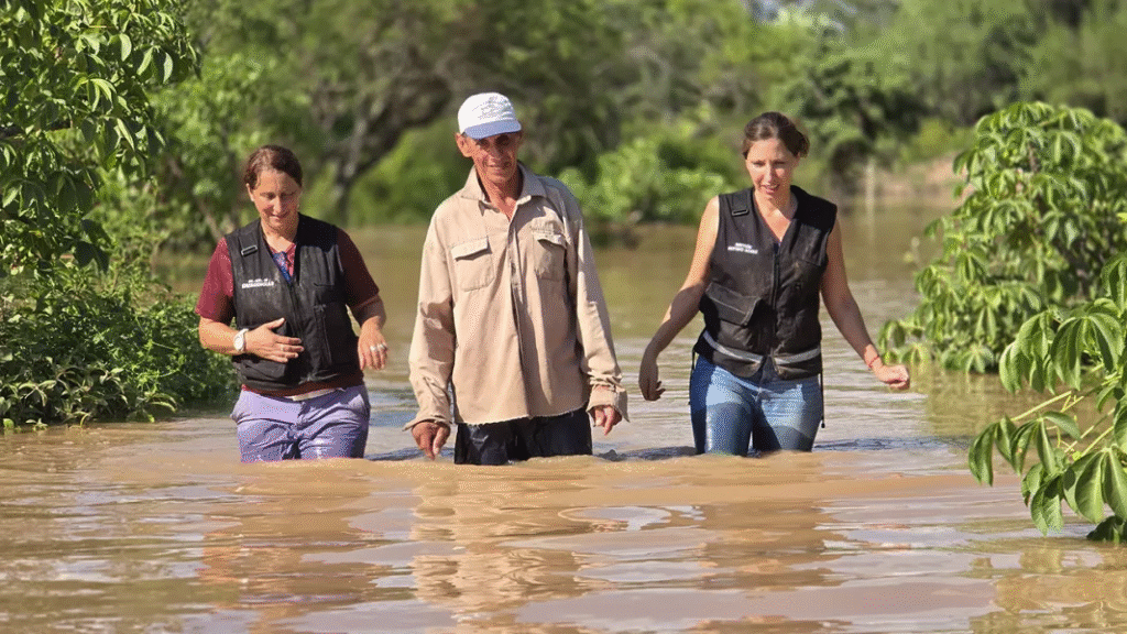 El ministro de Desarrollo Social, Mario Mimessi, visitó el municipio de Rivadavia Banda Sur junto a su equipo de trabajo, donde fue recibido por el intendente Leopoldo Cuenca, con el objetivo de reforzar la asistencia a las familias afectadas por las crecidas del río Bermejo.