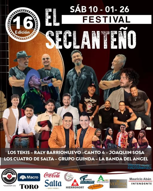 La cartelera artística del Festival El Seclanteño estará integrada por reconocidos artistas como Los Tekis, Rally Barrionuevo, Canto 4, Grupo Guinda, Los Cuatro de Salta, La Banda del Ángel, entre otros. El valor de la entrada general online es de $18.000 y puede adquirirse a través de https://boleteriadigital.com.ar/ubicaciones?funcion=2661.
