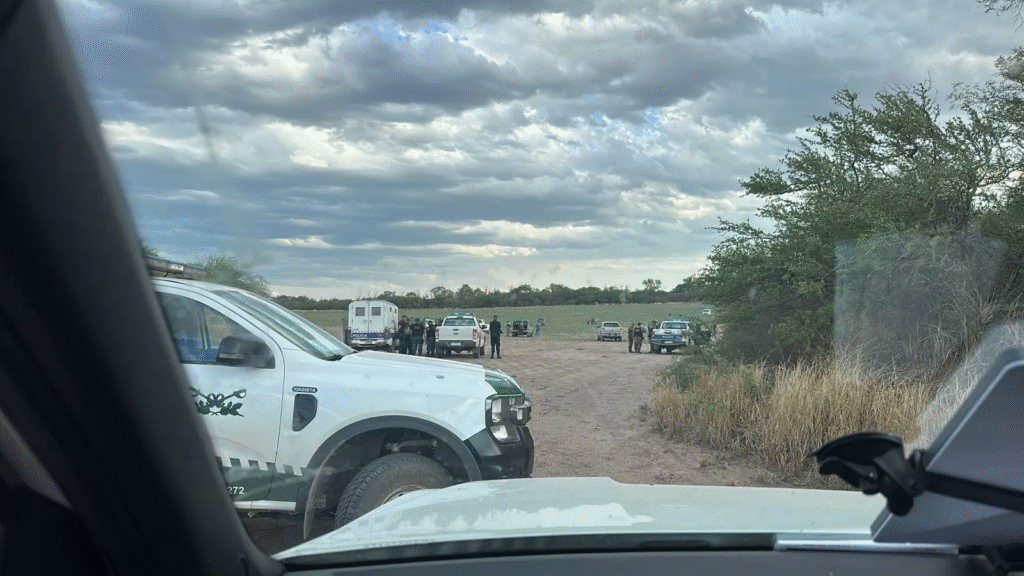 Desde el epicentro del operativo, el Fiscal Villalba destacó la coordinación entre las fuerzas de seguridad. “Se están haciendo rastrillajes en todo el lugar”, sostuvo el fiscal, resaltando enfáticamente la labor de las tres fuerzas intervinientes en la recolección de pruebas.