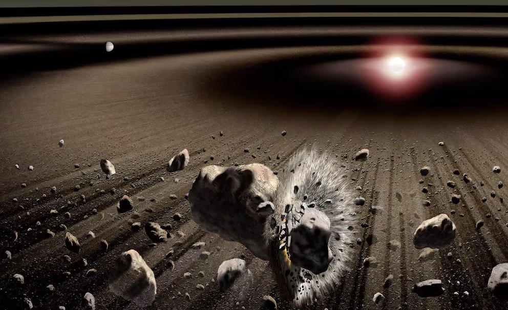 Hace miles de millones de años, el sistema solar era un disco en rotación compuesto por gas y polvo. Esos elementos se agruparon en meteoritos que luego se fusionaron para crear planetas en formación.