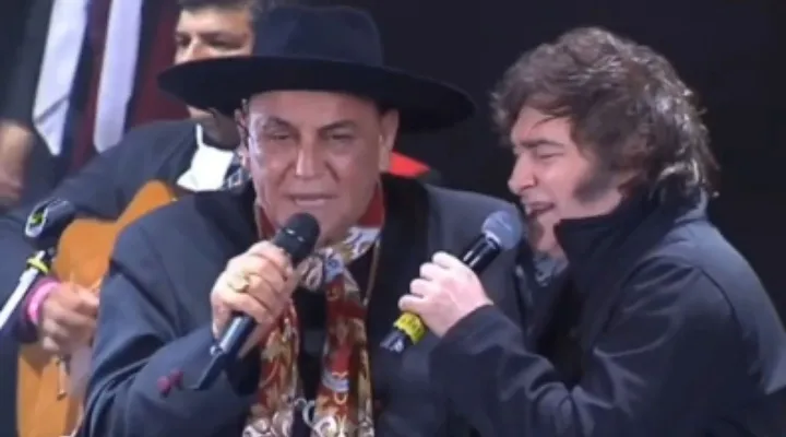Ante la invitación de Palavecino para cantarlo a dúo, el Presidente intentó excusarse inicialmente alegando que “no le da el piné” y que él es un “amateur” al lado del folclorista. Sin embargo, tras la insistencia del músico —quien le recordó su pasado rockero y cantando temas de Leonardo Favio—, Milei subió al escenario.