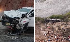 El colectivo de la empresa Llamosas, que partió de Chala rumbo a Arequipa Perú, cayó a un abismo de más de 200 metros tras chocar con una camioneta a la altura del kilómetro 780 de la Panamericana Sur. Las labores de rescate continúan y varios heridos permanecen graves.